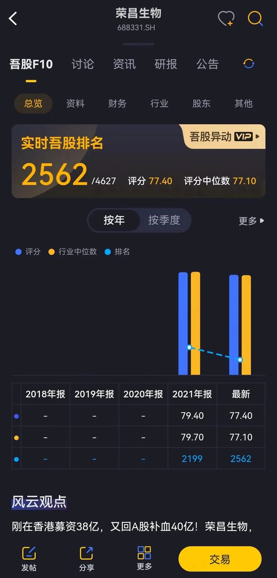 回到基本面,荣昌生物吾股排名2562,仅为中游水平。2008年成立以来主营业务为创新生物药,而在2021年之前其所有候选药物尚未进入商业化阶段,整整十三年未开张,自然面临亏损窘境。