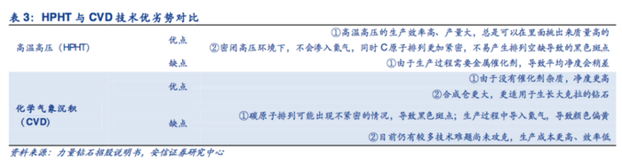 更加重要的是,近年来快速铺开的CVD技术,相较于力量钻石所用HTHP技术,在纯净度及大颗粒钻石培育上具有优势。