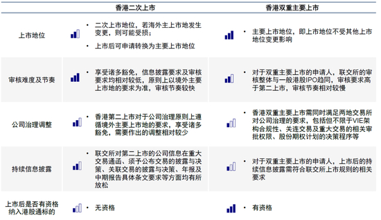 图表:香港双重主要上市 vs. 二次上市对比