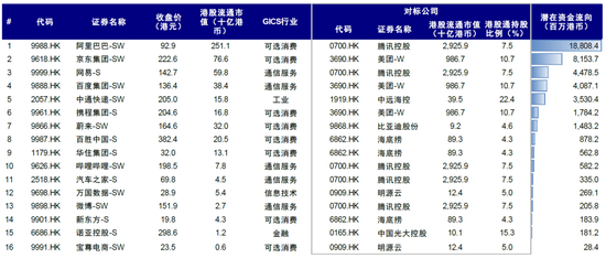 图表:若二次上市公司被纳入港股通合资格标的,可能带来的潜在被动资金测算