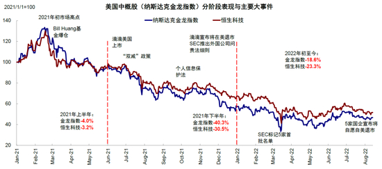 图表:美国中概股2021年以来表现及关键事件梳理