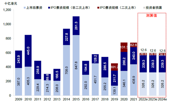 图表:27家潜在回归公司新增融资和股份转换交易可能带来每年268亿港元的流动性吸收