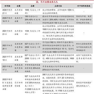 《芯片法案》酝酿已久。从历史沿革来看,早在2020年5月和6月,美国国会就提出了“无尽前沿”法案和“美国芯片”法案,分别涉及税收抵免政策以及约1000亿美元的科研补贴,2021年4月提出的“美国创新与竞争”法案涵盖了527亿美元的制造补贴,《芯片法案》基本由以上三个历史法案内容合并而成。