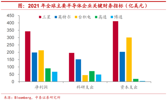 近年最大政策补贴。从法案涉及的补贴规模来看,本次通过的芯片法案属于近年来美国半导体行业享有的最大政策补贴,制造方面约含527亿美元资金补贴与25%的税收抵免。但并非全部资金都将补助芯片企业建厂。在这527亿美元补贴中,390亿美元将分五年用于投资和扩建半导体制造厂和制造设备,110亿美元将分五年被用于科研,22亿美元将用于培养和培训半导体人才,剩余5亿美元将用于通讯科技安全和供应链。