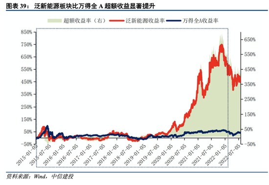 泛新能源板块行情进化阶段约在2015年至2021年Q3,这一时期: