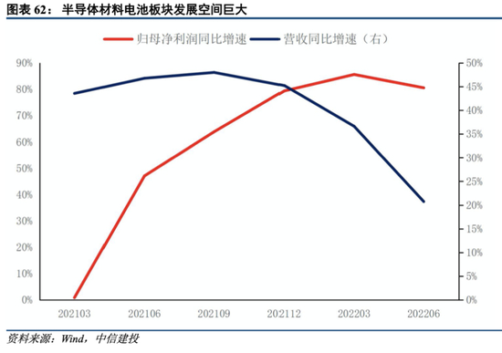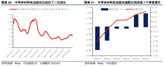 半导体材料板块相比万得全A有明显超额收益,目前估值相比4月最低点32倍已上升至50倍左右,后续继续关注具有发展潜力的龙头公司。