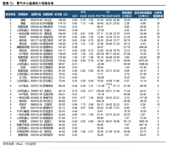 重点关注高景气板块中小而美的优质公司。在等级评分为3、4、5的板块中,我们筛选出最具备进化基因的重点优质公司构建了景气中小盘潜在十倍股名。