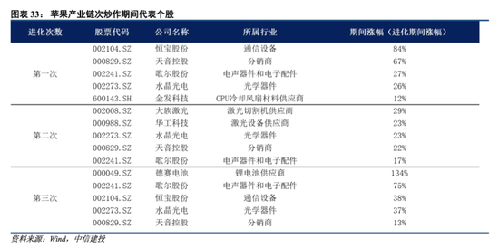 苹果产业链行情进化阶段代表个股炒作情况: