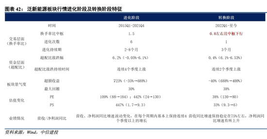 泛新能源板块在进化阶段及转换阶段呈现出以下特征: