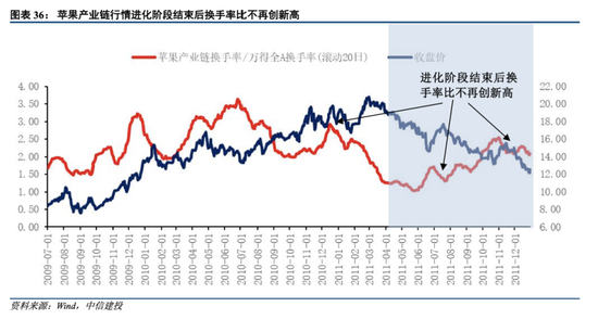 苹果产业链:进化阶段换手率比与短期行情结束时点的关系