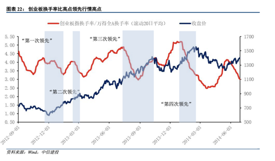 创业板行情四次换手率高点领先行情高点具体情况: