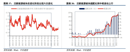 对泛新能源板块行情进行复盘,按照指标我们发现2015年Q1-2021年Q4正是泛新能源板的进化阶段。早期的泛新能源板块发展主要受到政策驱动,由于技术早期不成熟,成本较高,渗透率较低,因此行业发展主要依靠政府补贴,随着技术水平不断提高,行业发展由政策驱动转向由市场需求驱动,行业成长性凸显。市场对行业的认知也在这个过程中不断提升,资金参与度逐渐提高,超配比例不断增加。