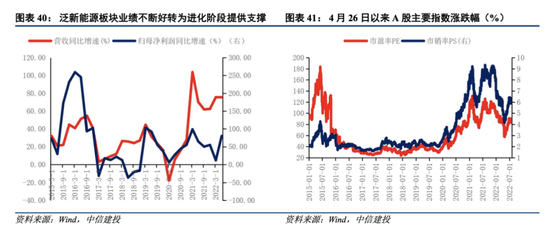 2022年以后,市场对泛新能源板块的认可度不断提高,估值较进化阶段的最高值有所回落,PE中枢在80倍左右。