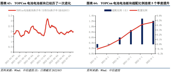 TOPCon电池板块相比万得全A有明显超额收益,目前估值相比4月最低点68倍已上升至100倍左右,后续需关注估值及业绩情况。