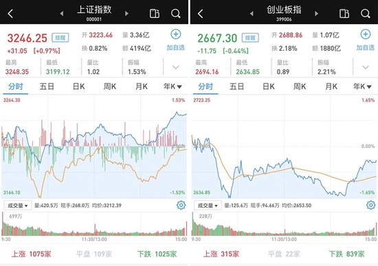 至8月25日收盘,上证综指涨0.97%,报3246.25点;科创50指数跌1.22%,报1055.89点;深证成指涨0.06%,报12104.03点;创业板指跌0.44%,报2667.3点。
