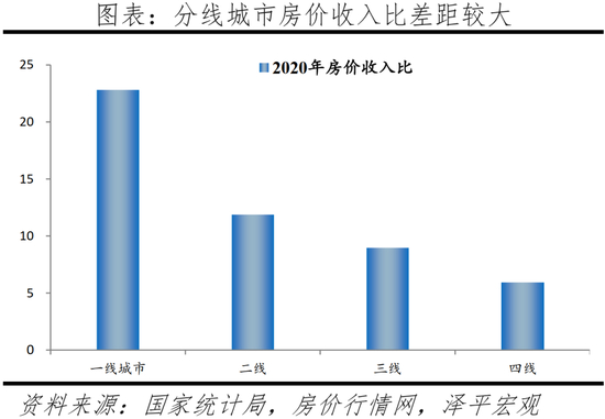 从购买能力看,一线城市北上广居前三,苏州、杭州、佛山、绍兴、无锡、宁波、珠海位列4-10名,深圳由于较高的房价收入比而未进入前十。绝对购买力包括收入和存款,2020年一线、二线、三线、四线城镇人均可支配收入分别为7.2、5.1、4.2、3.5万元。具体看,城镇人均可支配收入前十的城市分别为上海、北京、苏州、杭州、广州、宁波、南京、绍兴、深圳、无锡,全部位于东部地区,除北京外全部位于长三角、珠三角地区。城镇居民人均储蓄存款前十的城市分别为北京、上海、广州、杭州、佛山、太原、深圳、珠海、南通、鄂尔多斯,有8成位于东部地区,尽管当前“存款搬家”现象明显,但仍能反映居民一定的购买力情况。房价收入比方面,2020年一线、二线、三线、四线城市房价收入比分别为22.8、11.9、9.0、5.9,城市间分化显著,这与全球其他经济体核心城市房价收入比较高的情况一致。具体看,全国房价收入比前十的城市分别为三亚、深圳、北京、厦门、上海、福州、杭州、丽水、莆田、宁德,均位于东部,其中三亚为全国旅游城市、房价主要受外来者购房推动。从原则上讲,在供需基本平衡的市场,房价由中位数收入人群决定;在供给明显大于需求的市场,房价由低收入人群决定;在供给明显小于需求的市场,房价则由高收入人群决定。并且,与国外明显不同,因文化传统差异,中国父母对子女的资金支持通常较大,这使得传统房价收入比的度量存在一定偏差。不过,考虑到现实并无更好的指标及数据衡量相对购买能力,本文依然采用房价收入比度量。