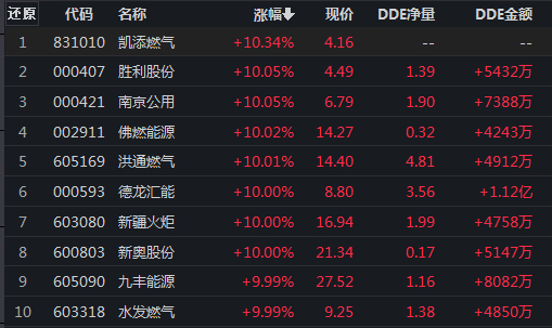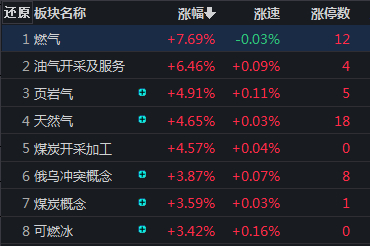 除了俄乌冲突概念板块大涨之外,天然气、油服板块掀涨停潮,南京公用、洪通燃气、新疆火炬、九丰能源、贝肯能源等十余股集体涨停,富瑞特装、首华燃气、凯添燃气涨超10%。