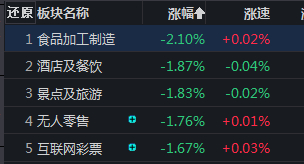 消费股跌幅居前,食品加工、酒店餐饮、景点旅游纷纷回落。
