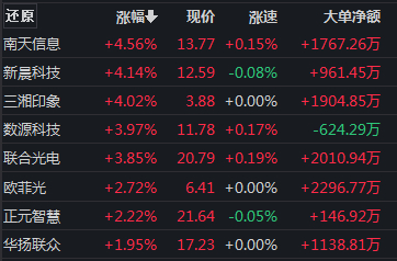 元宇宙整体走势回落,板块涨跌互现,南天信息、新晨科技、三湘印象涨超4%,数源科技、联合光电等跟涨;新国脉跌幅超5%,华立科技、完美世界等跟跌。