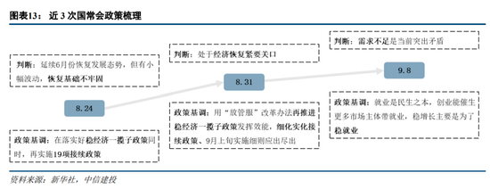 近期表观经济金融数据大多低于市场预期,显示经济依然偏弱,如出口数据出现下行,但随着重要会议时点临近,市场对于稳增长的政策期待再度上升,李克强总理主持召开的近三次国务院常务会中,研判当前经济处于恢复紧要关口,定调稳增长目标,推动经济企稳向好,同时复盘来看大会召开前1-2月政策往往会密集出台,助推经济快速恢复。