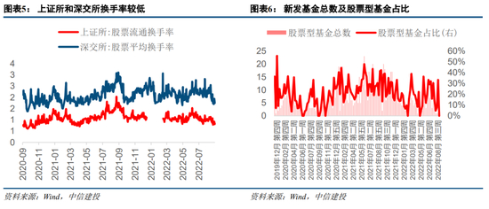 A股具备配置性价比。目前万得全A和沪深300的隐含风险溢价均超过近8年来90%分位,配置性价比凸显,且当前沪深两市换手率持续下行,新发基金数量也保持低位,已充分反映各种悲观预期。