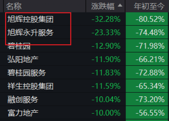 受消息影响,旭辉股价今日大跌3成,带动内地房地产板块整体向下。