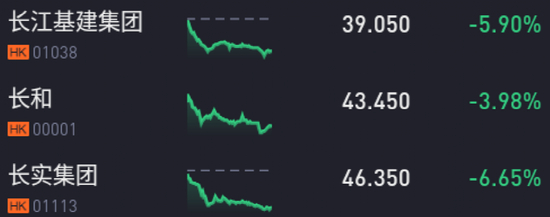 长实系近日持续下跌,李嘉诚旗下的长实集团、长和及长江基建股价大跌破位。