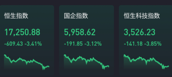 恒生指数跌600点,科技指数大跌140点,逼近年内3463点的低点。
