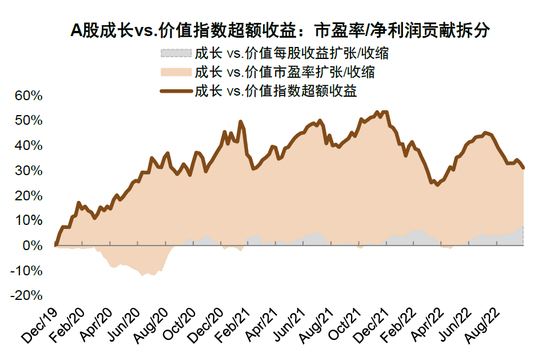 图表52:成长价值风格看,今年来成长风格盈利扩张好于价值风格,但估值影响下成长风格前期跑输