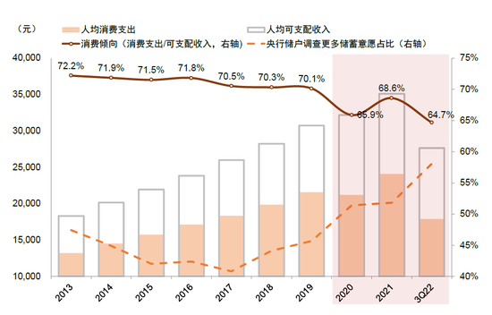 1) 疫情形势或可能的政策优化或将释放居民部门所积累的消费潜力,带来需求层面的复苏。过去三年,收入预期下降和消费场景缺失的背景下,居民储蓄率有所上升,私人部门消费潜力已逐渐积累。消费能否改善是2023年中国经济修复的关键。疫情形势或可能的政策优化有望带来消费场景的修复,难点在于不确定性预期的改善。我们倾向认为,宏观环境的变化将使得居民储蓄部分释放为消费潜能。另外,直达消费的财政工具或成为政策推动因素。