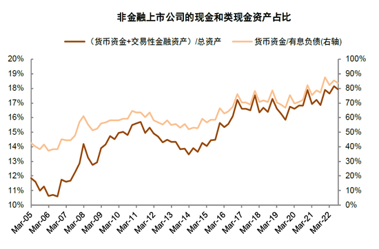 图表5:非金融企业现金资产占比已上升至高位