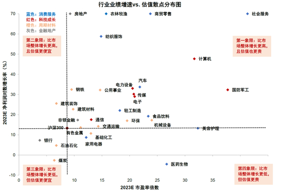 注:2023年房地产、农林牧渔、商贸零售、社会服务业绩增速较高,为更好呈现已进行数据处理