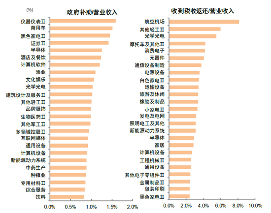 图表22:政府补助和收到现金流返还较多的行业