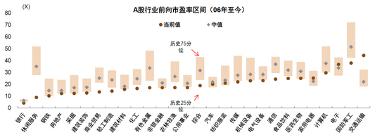 图表46:大部分行业估值低于历史中位数水平