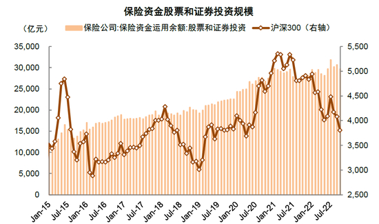 图表38:2022年保险资金证券投资规模缓慢提升