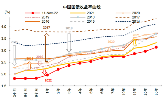 注:数据截至2022年11月;横轴代表各期限的中国国债收益率