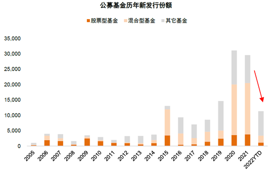 图表31:2022年公募基金发行份额有所下滑