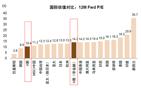 图表47:当前中国市场整体估值水平在全球具备吸引力