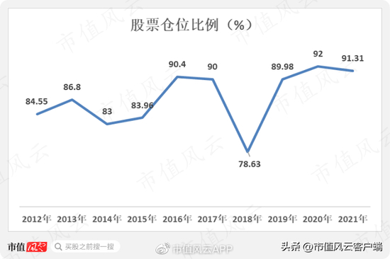 有意思的是,2018年Q4股票仓位比例锐减至78.6%是因为有机构扛不住退出,反倒是无所畏惧的基民短期加码申购所致。
