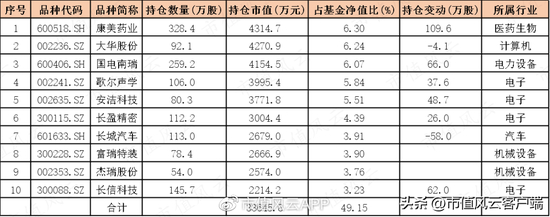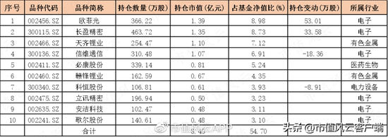 (来源:Choice数据)消费电子制造行业是杜猛在2012年Q2-2013Q3、2016年Q2-2018年Q3的重仓行业,主要持仓标的有歌尔股份、安洁科技、长盈精密、长信科技、立讯精密、信维通信和欧菲光等。在2017年Q1,新兴动力前十大重仓股有6只是上述股票。