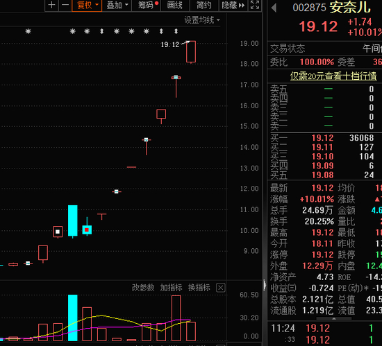 早盘,安奈儿再度涨停,短短11个交易日9个涨停板,累计涨幅达到127%。