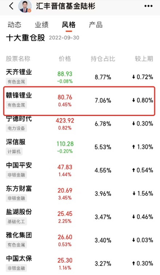 陆彬三季度加仓赣锋锂业