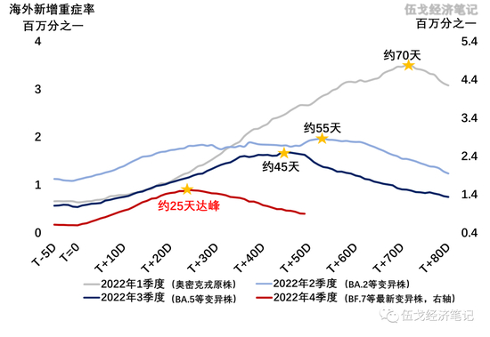 消费场景的打开是消费修复的前提。奥密克戎及其变异毒株引发的逐轮疫情,呈现出爬坡期逐渐缩短趋势,从原始毒株2个月左右降至1个月左右。当前病毒传染力更强,防疫优化速度更快,或意味着我国疫情将更快达峰。