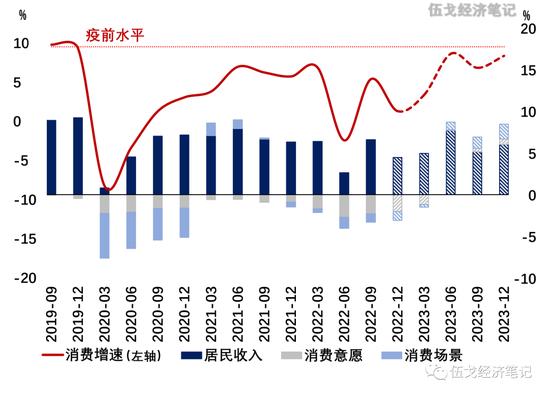 4.展望明年,我国疫情加速爬坡或将在春节前后达峰,此后消费场景逐步打开,二季度消费有望开启修复进程。刺激政策或有帮助,可选消费的修复弹性可能更明显。但温和的经济基本面加之大疫三年居民资产负债表受损,消费恢复至疫前仍是缓慢过程。