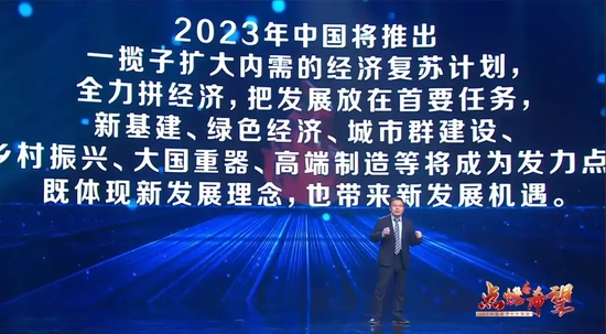 第五大预测:2023年中国将推出一揽子扩大内需的经济复苏计划,全力拼经济,把发展放在首要任务,新基建、绿色经济、城市群建设、乡村振兴、大国重器、高端制造等将成为发力点,既体现新发展理念,也带来新发展机遇。