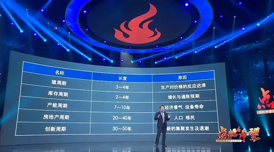 这就是经济社会大周期,跟我们以前讲的商业经济周期不一样,猪周期是3-4年一轮的农业短周期,库存周期是3年一轮的存货调整短周期,产能周期是7-10年一轮的设备更新中周期,房地产周期是由人口和金融等因素带来的20年一轮销售投资周期,创新周期是由创新带来的产业投资浪潮及其退潮引发的30-50年一轮周期波动。我们每个人的一生都会经历10轮产能周期、30轮存货周期、30轮猪周期,但是对于以百年计的经济社会大周期,一个人的一生只能经历其中的一个片段,现在我们就处在大周期的转折点上,旧秩序开始瓦解,新秩序正在重建,动荡和摩擦在加大。