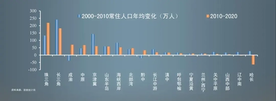 我们再来看中国,从城市群看,中国人口持续向珠三角、长三角城市群集聚。近10年珠三角、长三角城市群年均常住人口增量超180万人,成渝、中原城市群年均常住人口增量超65万人,但东北、西部等区域近年呈现人口流出趋势。