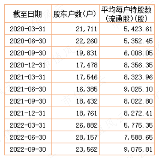 机构的同时建仓,使得该公司的股东户数在2022年3季度较二季度末减少了近4600户,户均持有流通股数增加了1500股。