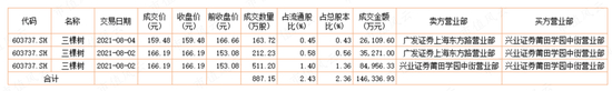 非常巧合的是,风云君正好找到这期间三棵树的大宗交易,8月2日、4日,3笔大宗交易合计成交金额14.63亿元,减去此前5.83亿元的成本,净赚8.8亿元。
