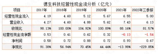 看来,德生科技是以牺牲现金流换来的营收“纸面繁荣”。